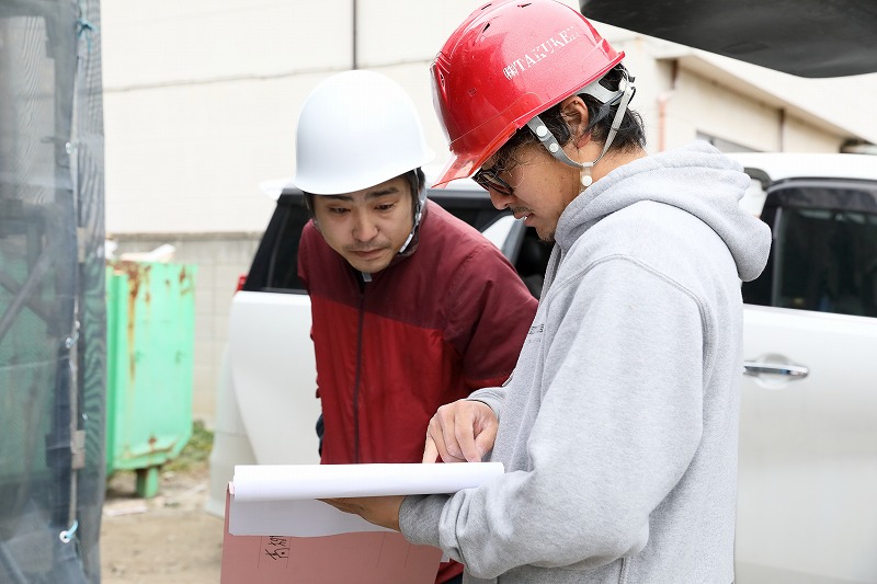 こちらのページでは、株式会社TAKUKENの実際の施工風景や現場で働くスタッフの様子、社内の雰囲気などを紹介しています。